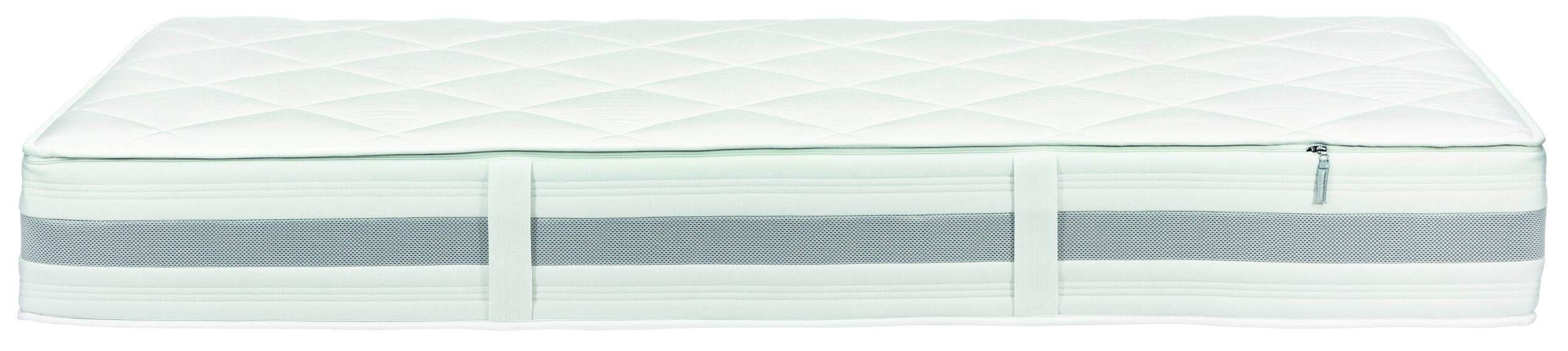 Kern: • 12 cm hoher 7-Zonen-Tonnentaschenfederkern mit ca. 1000 Federn • Kernhöhe ca. 23 cm • beidseitig ca. 5,5 cm hohe Sandwich-Polsterauflage aus AQUAPUR®-Schaum, Raumgewicht 50 kg/m³ • ergonomische Waffelprofilierung auf der Oberfläche • Trikot Zwischenbezug Hochwertig verarbeiteter Viskose-Drellbezug 79% Viskose, 21% Polyamid, versteppt mit 500 g/m² Schafschurwolle und 200 g/m² Hygienevlies (100% Polyester) • Borderbezug mit silbernem Klimaband aus weitmaschigem Mesh und Handgriffen, • abnehmbar durch Reißverschluss • Drellbezug nur reinigungsbeständig Gesamthöhe/Seitenhöhe: Ca. 26 cm Besondere Merkmale: zertifiziert nach OEKO-TEX® Standard 100, Produktklasse 1 für Babyartikel, Lizenznummer 63489