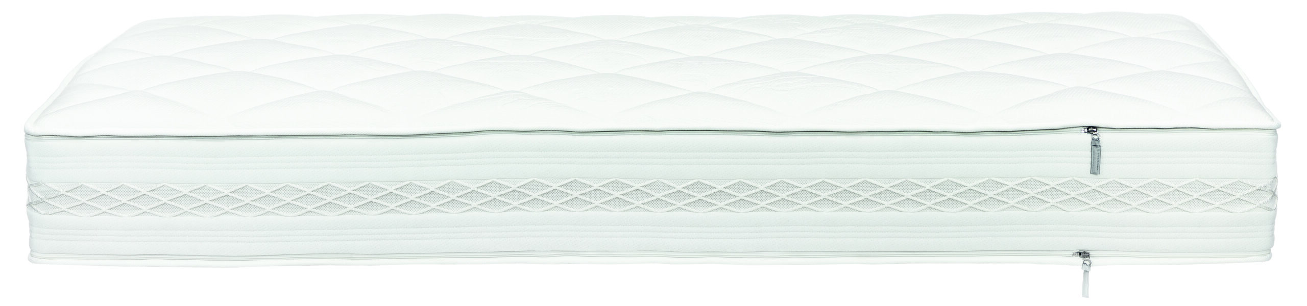 KERN: • 12 cm hoher 7-Zonen-Tonnentaschenfederkern mit 1000 Federn • Kernhöhe ca. 22 cm • Wollfilz-Federkernabdeckung • beidseitig ca. 5 cm hoher AQUAPUR®-Schaum, Raumgewicht 55 kg/m³ • aufwändig gefertigtes Oberflächenprofil mit längs und quer verlaufenden Lüf-tungskanälen • Ergonomische Anpassung im Schulter-, Lordose- und Beckenbereich • seitliche Sitzkantenverstärkung BEZUG: Borderbezug mit Griffnetz kombiniert mit einem Klimaband aus weitmaschigem Mesh, abnehmbar durch 2 Reißverschlüsse ✓ Lyocell-Jersey mit Hygieneausstattung, Dessin 3200 (70% Polyester, 30% Lyocell) beidseitig versteppt mit 600 g/m² atmungsaktivem Hygienevlies (100% Polyester) für guten Feuchtigkeitstransport, waschbar bis 60°C GESAMTHÖHE/SEITENHÖHE: Ca. 26 cm BESONDERE MERKMALE: zertifiziert nach OEKO-TEX® Standard 100 Für verstellbare Lattenroste geeignet